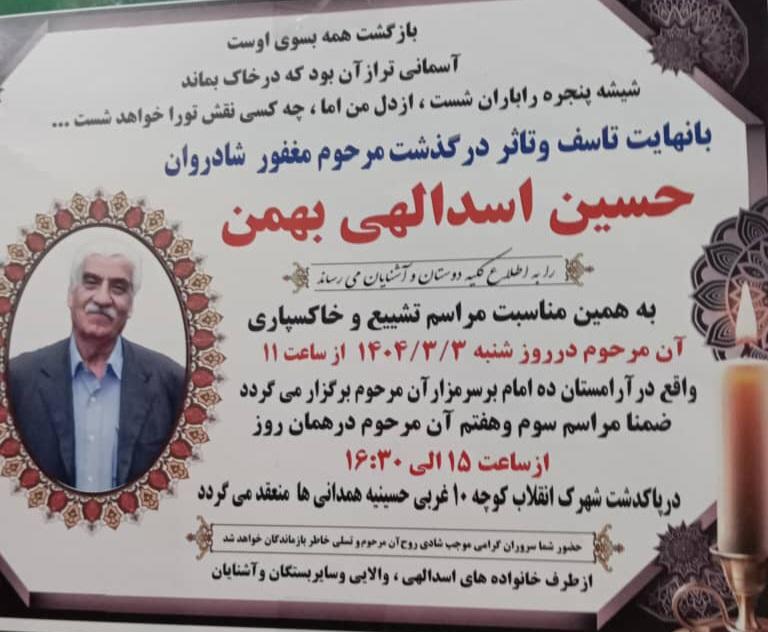 در سوگ فراقش، دست به دعا برمیداریم و برای شادی روح پاکش قرآن تلاوت میکنیم. باشد که نور آیات الهی، آرامشبخش قلبهای اندوهگین بازماندگان باشد...