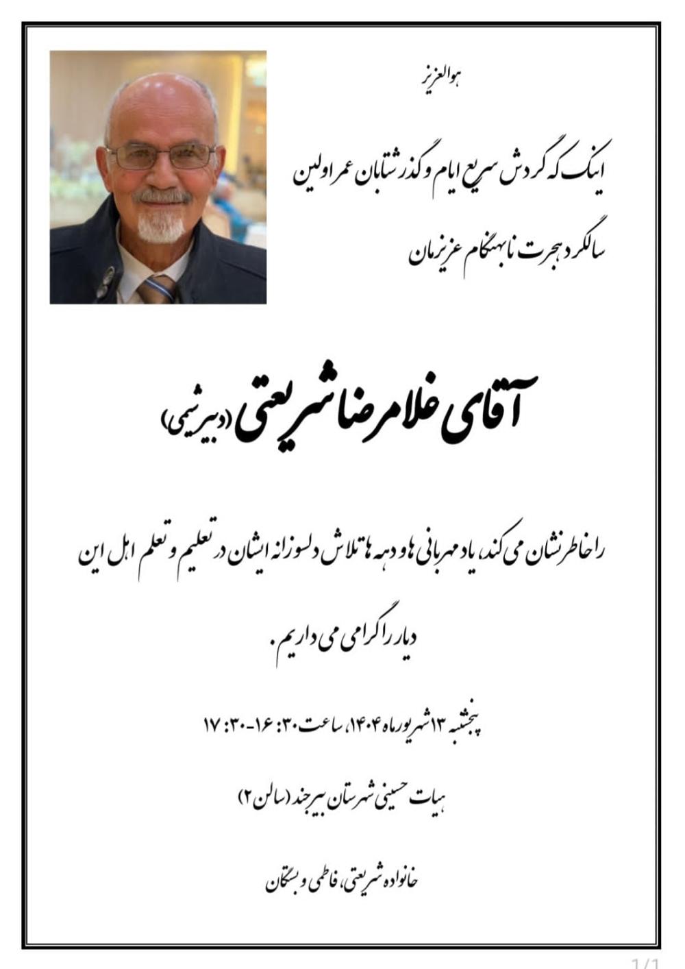 یادبود شادروان غلامرضا شریعتی