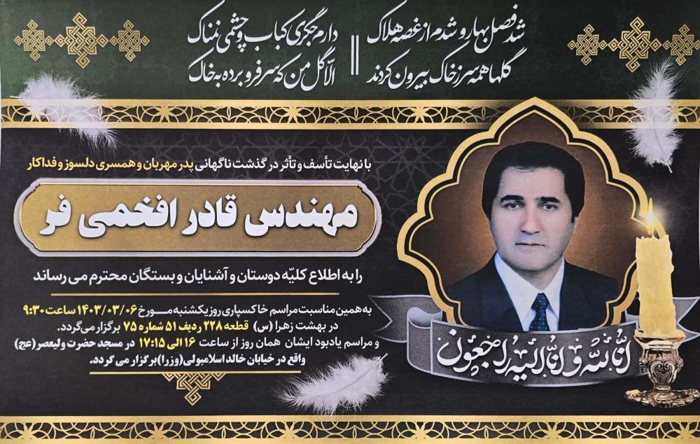 با کلیک بر روی دکمه های زیر،در مراسم ختم شرکت نمایید