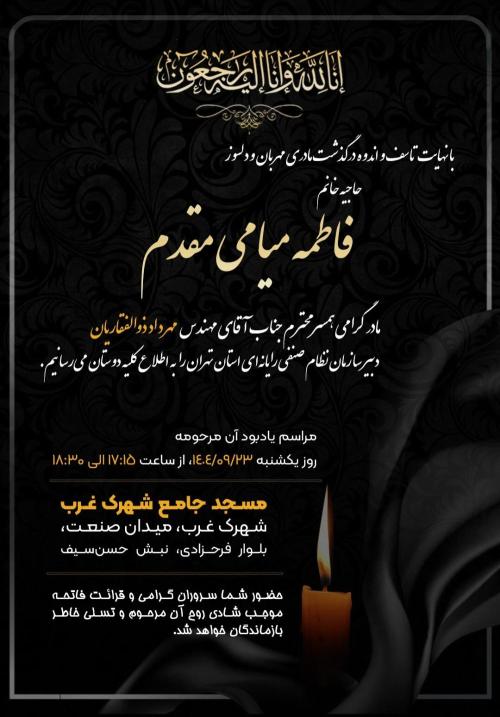 شادروان حاجیه خانم فاطمه میامی مقدم