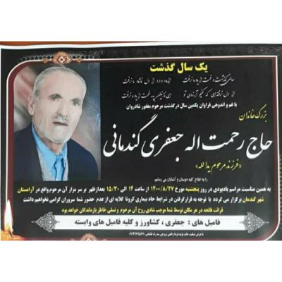 این صفحه یادبود به مناسبت اولین سالگرد مرحوم مغفور حاج رحمت الله جعفری گندمانی ایجاد شده، از شما عزیزان خواهشمندیم برای شادی روح آن مرحوم فاتحه و صلواتی هدیه کنیم🌹